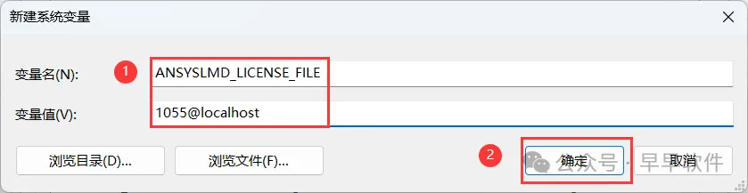 36、变量名输入:ANSYSLMD_LICENSE_FILE;变量值输入:1055@localhost,再点击【确定】