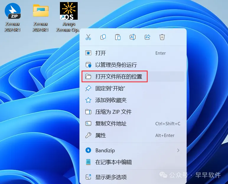 57、右键桌面上的【Ansys Zemax OpticStudio软件图标】,点击【打开文件所在的位置】