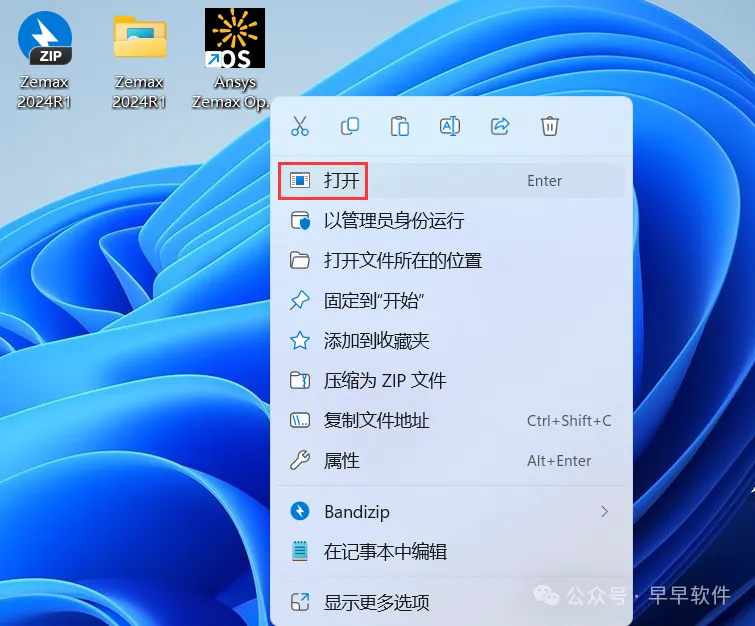 59、回到桌面,右键桌面上的【Ansys Zemax OpticStudio软件图标】,点击【打开】