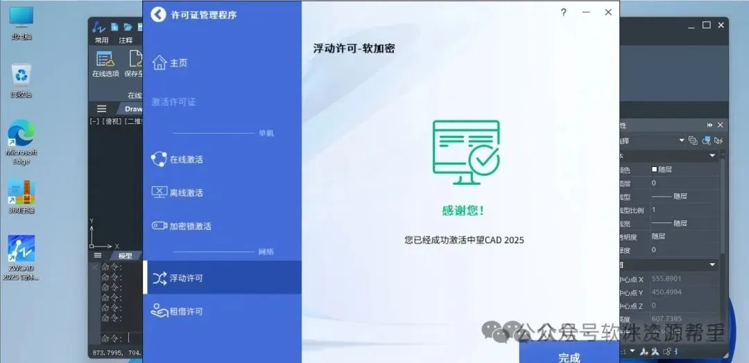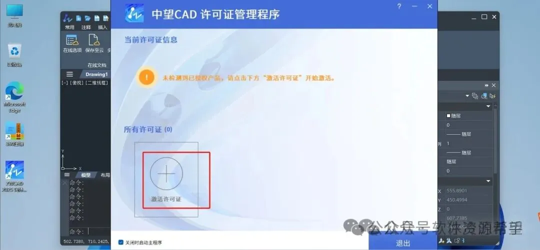 17.现在手动关闭中望CAD,然后再次启动它,你就会发现它现在已经处于激活状态了,那你就可以永久免费使用它了