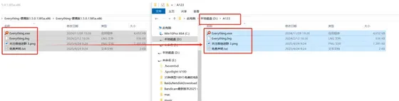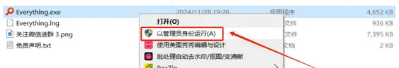4,在自己新建文件夹内找到【Everything.exe】,鼠标右键选择【以管理员身份运行】。