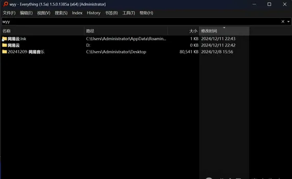 12,设置完成,例如我们输入“wyy”时就能搜索出“网易云”的文件和文件夹了。