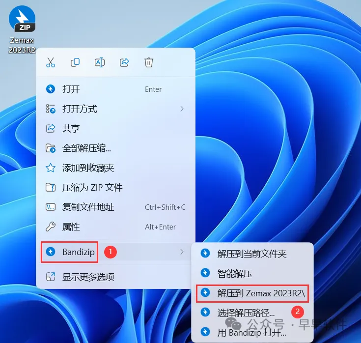 1、下载Zemax 2023R2软件安装包到电脑上,右键选择【解压到Zemax 2023R2\】