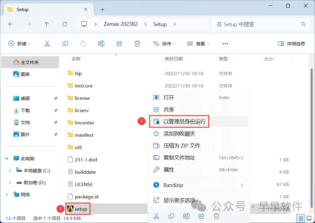 4、找到【setup】应用程序,右键选择【以管理员身份运行】它