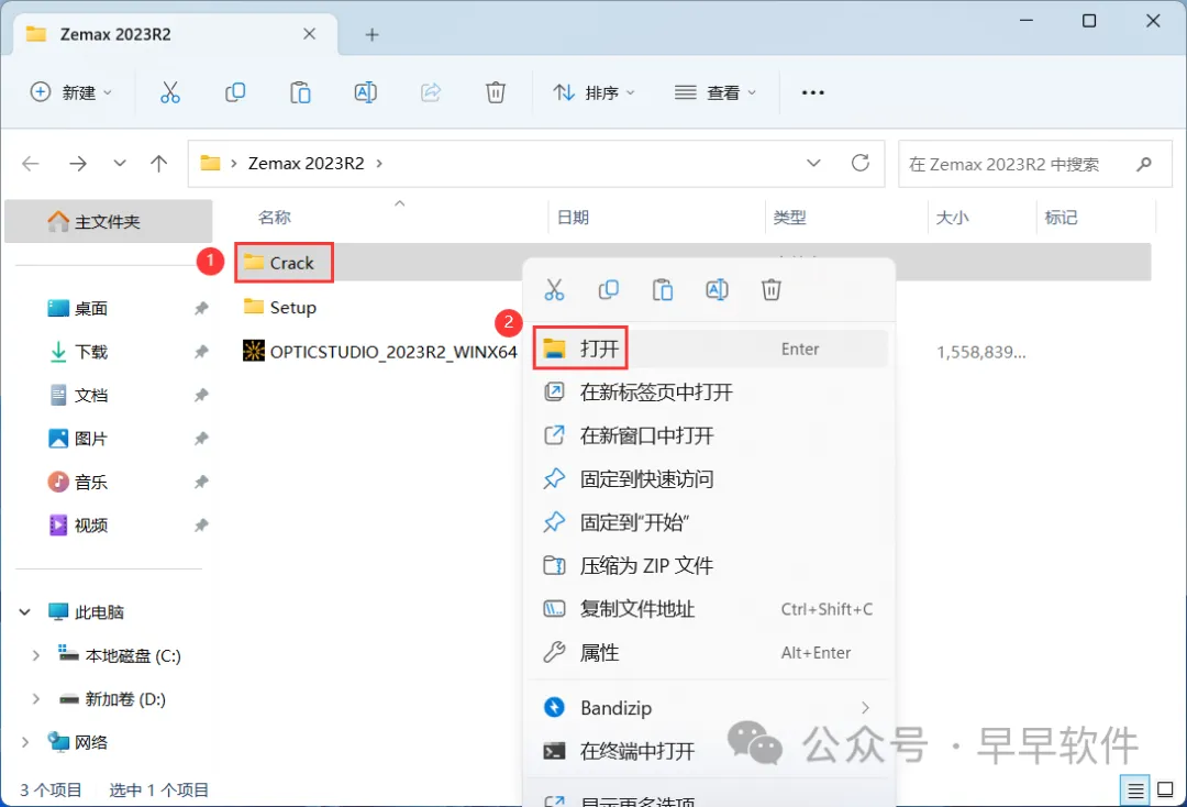 15、回到Zemax 2023R2文件夹,找到【Crack】文件夹,右键【打开】它