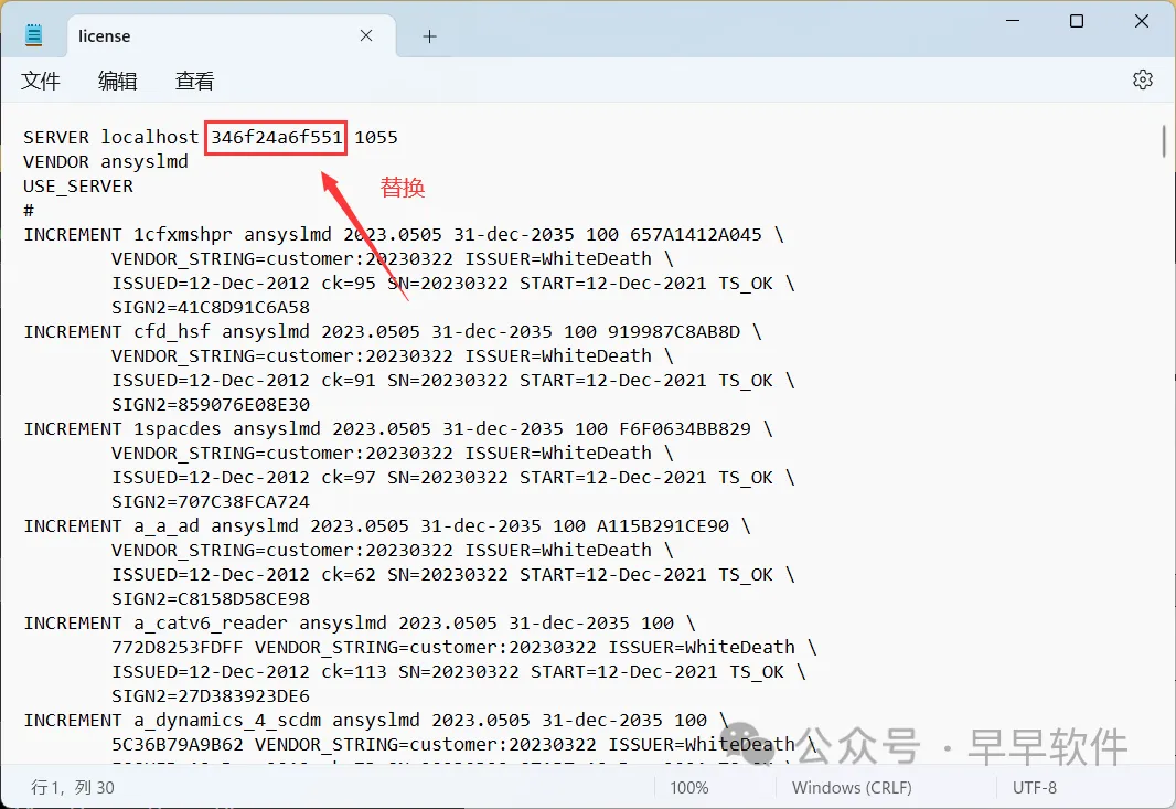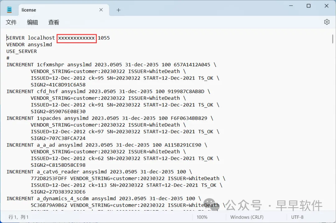 23、回到license文档,将【XXXXXXXXXXXX】替换成MAC Address(E)【HOSTID】值