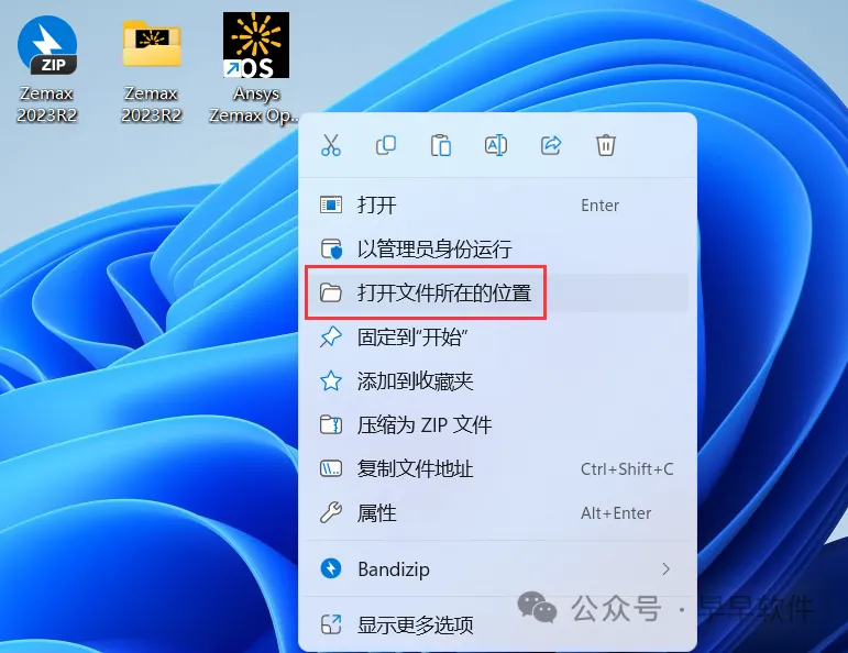 45、右键桌面上的【Ansys Zemax OpticStudio软件图标】,点击【打开文件所在的位置】