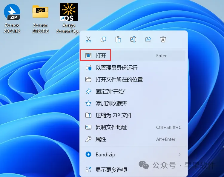 50、回到桌面,右键桌面上的【Ansys Zemax OpticStudio软件图标】,点击【打开】