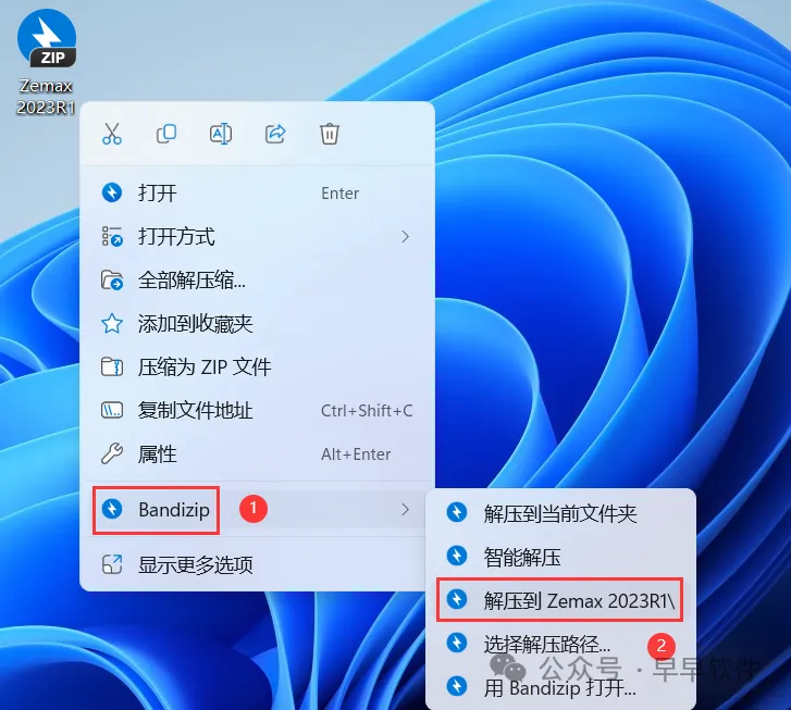 1、下载Zemax 2023R1软件安装包到电脑上,右键选择【解压到Zemax 2023R1\】