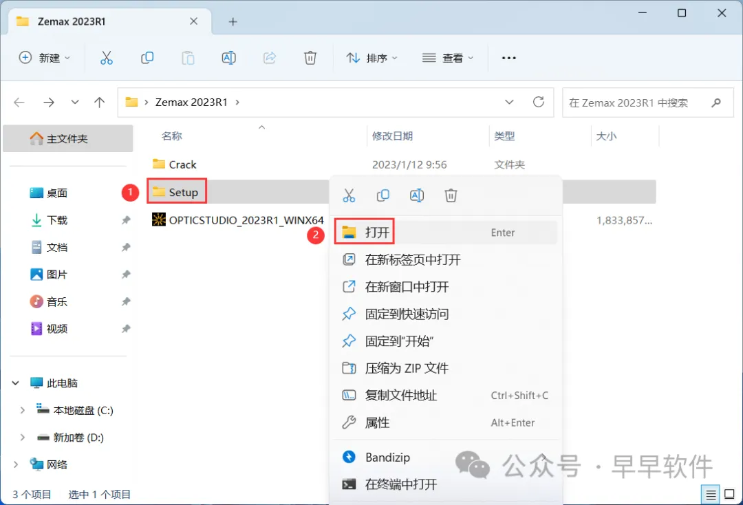 46、回到Crack文件夹,找到【Ansys Zemax OpticStudio 2023 R1.00】文件夹,右键【打开】它
