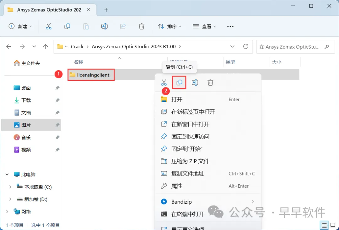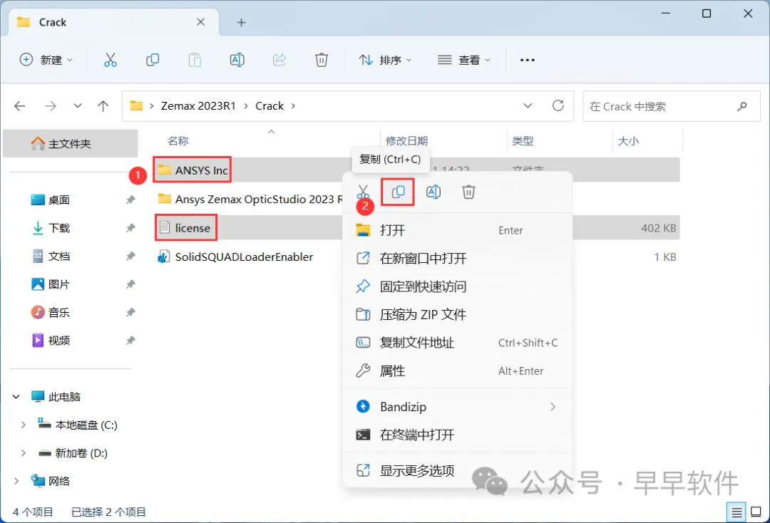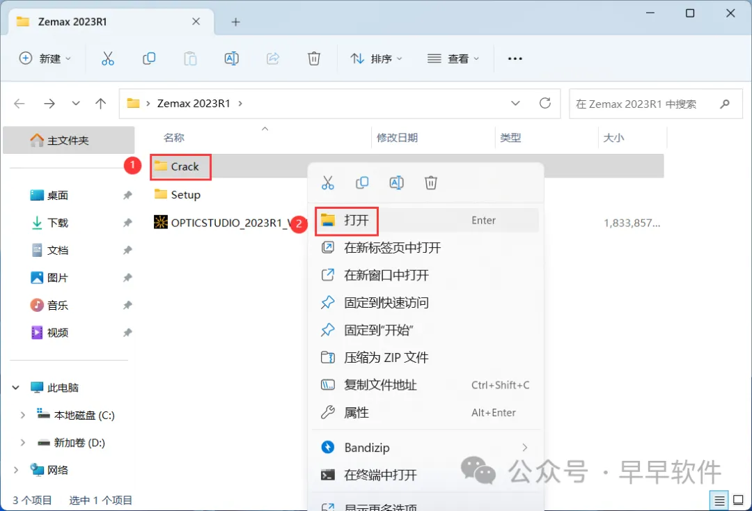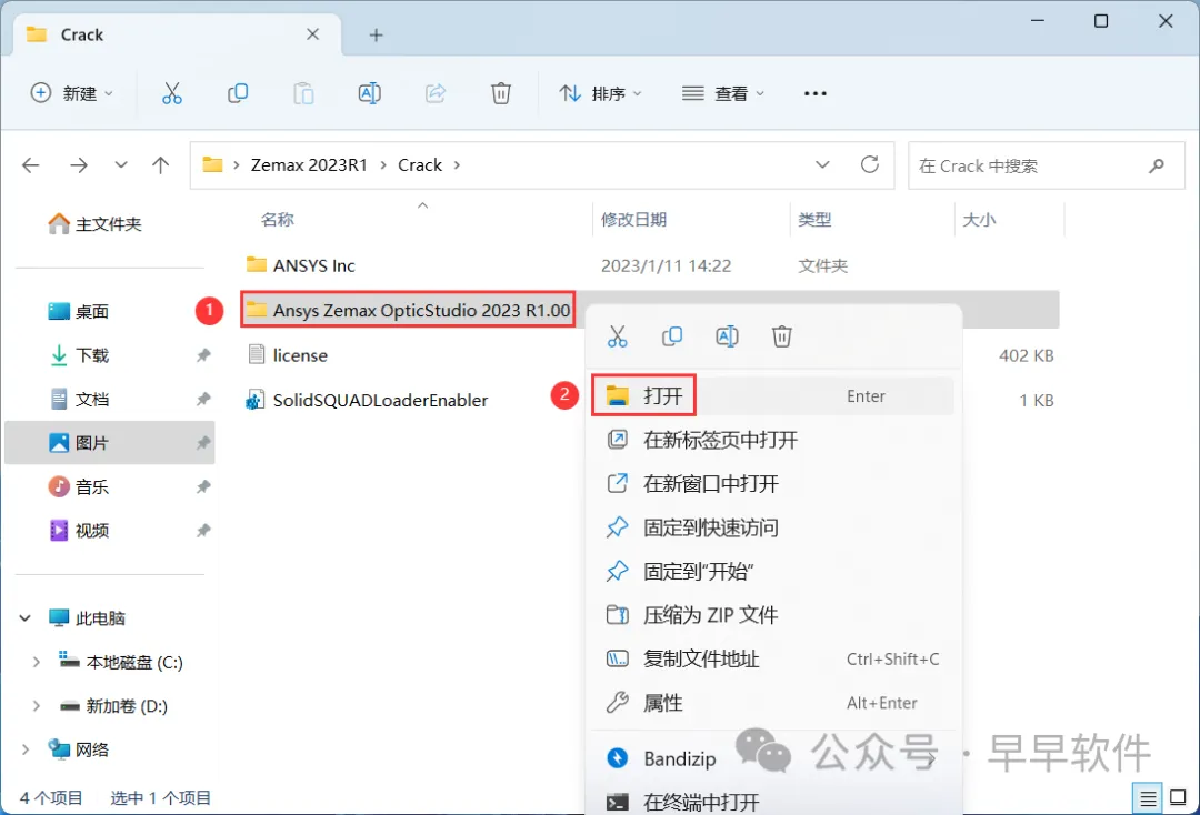 15、回到Zemax 2023R1文件夹,找到【Crack】文件夹,右键【打开】它