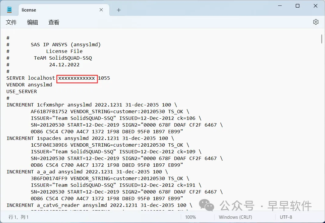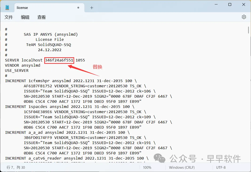 23、回到license文档,将【XXXXXXXXXXXX】替换成MAC Address(E)【HOSTID】值