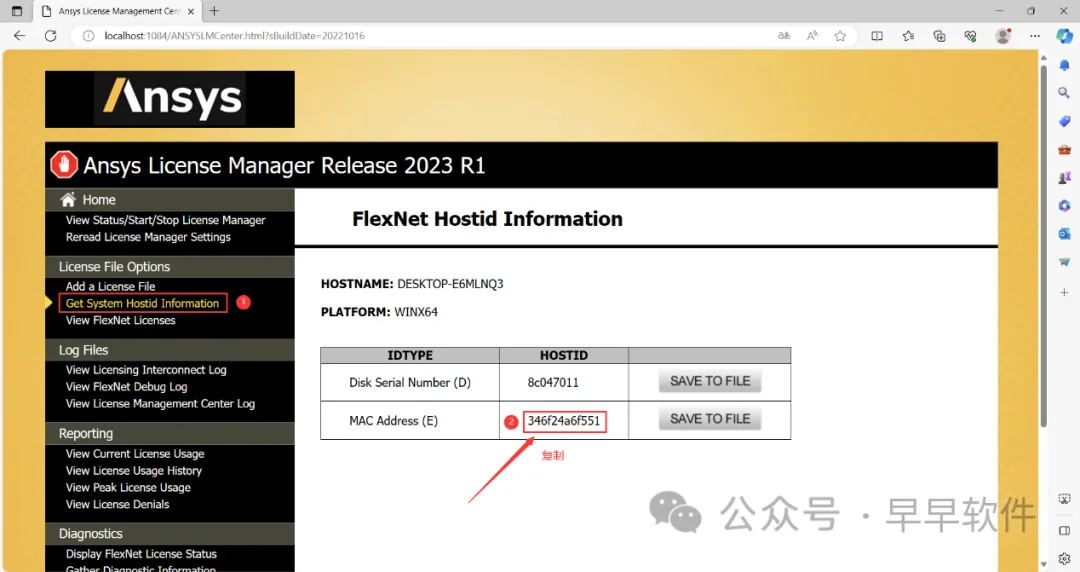 22、自动打开浏览器界面,点击左侧的【Get System Hostid Information】,复制MAC Address(E)【HOSTID】值
