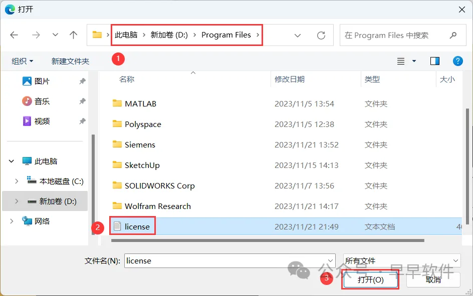 26、选择路径D:\Program Files下的license文档,再点击【打开】