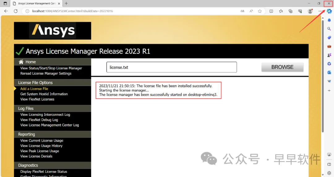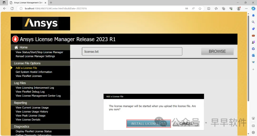 25、回到浏览器界面,点击左侧的【Add a License File】,再点击【BROWSE】