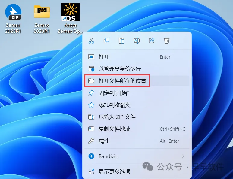 49、右键桌面上的【Ansys Zemax OpticStudio软件图标】,点击【打开文件所在的位置】