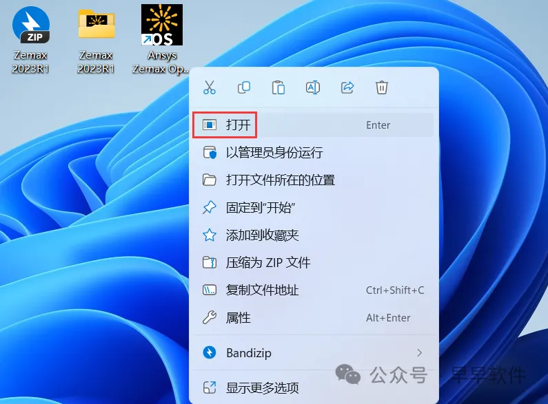 51、回到桌面,右键桌面上的【Ansys Zemax OpticStudio软件图标】,点击【打开】