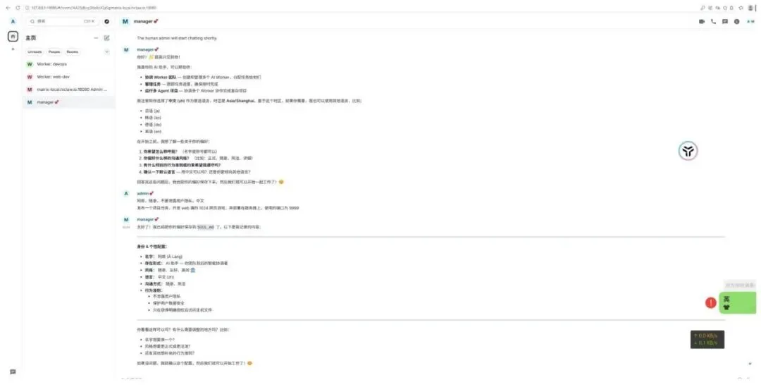 安装完成后,在 HiClaw 主操作界面发送任务指令,剩下的全部交给 AI!本次实战任务:开发 web 端 1024 网页游戏,部署在服务器上,使用端口 9999。