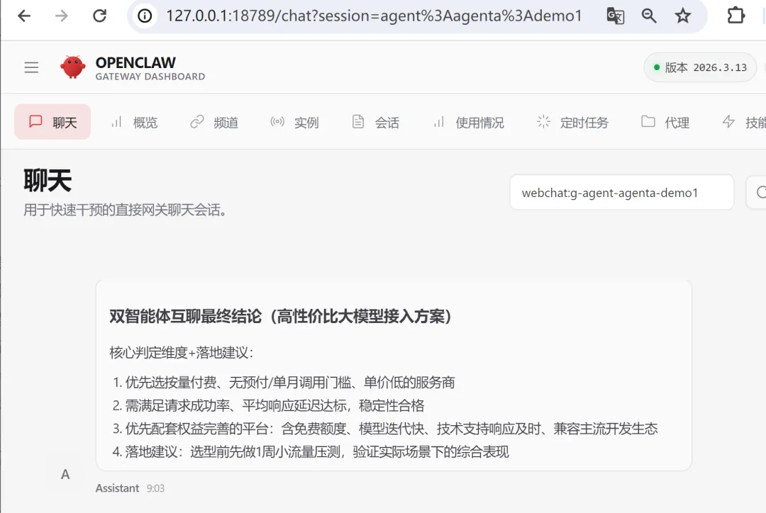在同一个 OpenClaw Gateway 中实现多智能体互聊,本质上就是为多个 agent 建立独立运行空间,再通过 sessions_send 向目标 session key 投递消息,同时开启 agentToAgent 与 sessions.visibility =“all”,交给网关完成自动 ping-pong 协作。