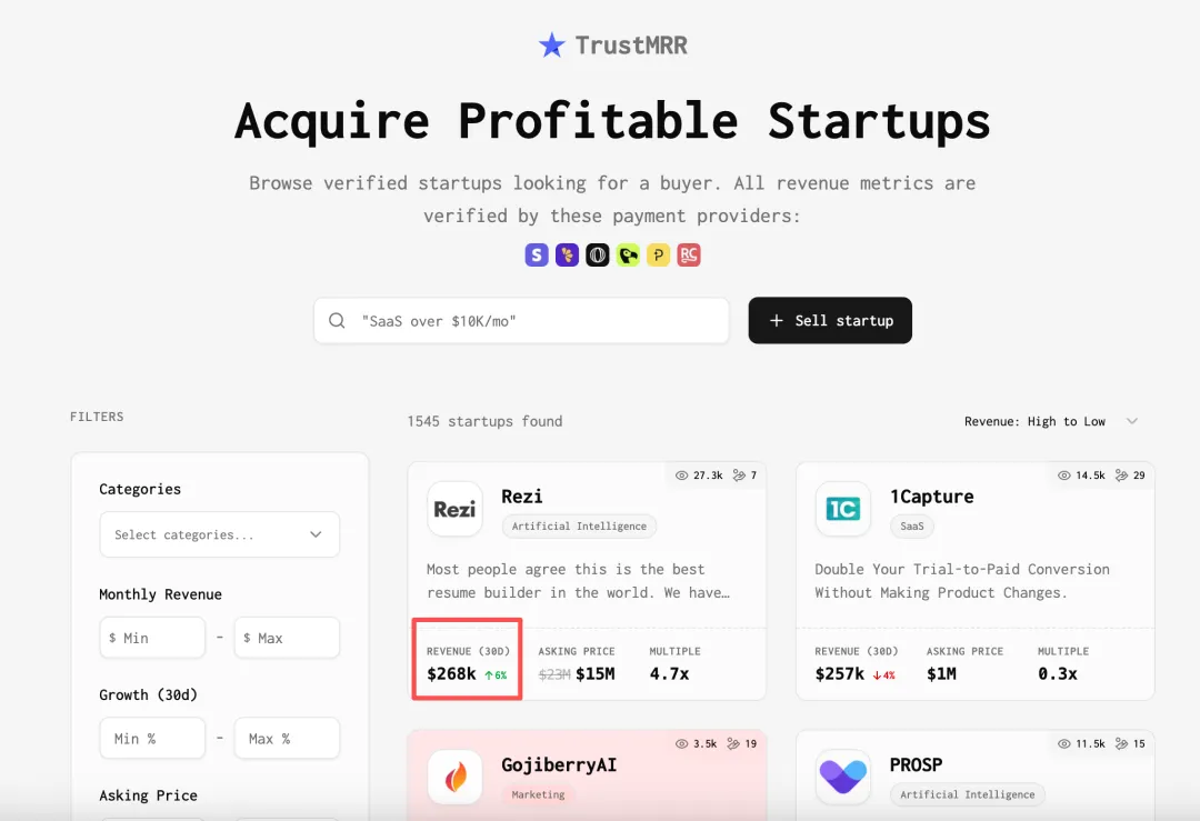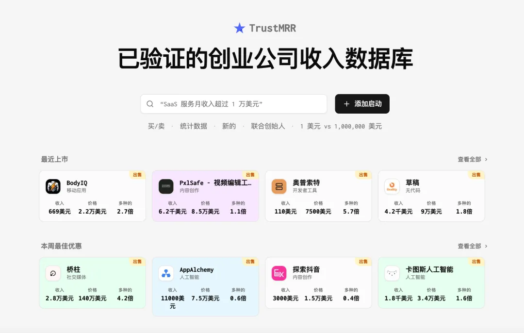 所有项目、收入数据、排行榜——全部公开。
