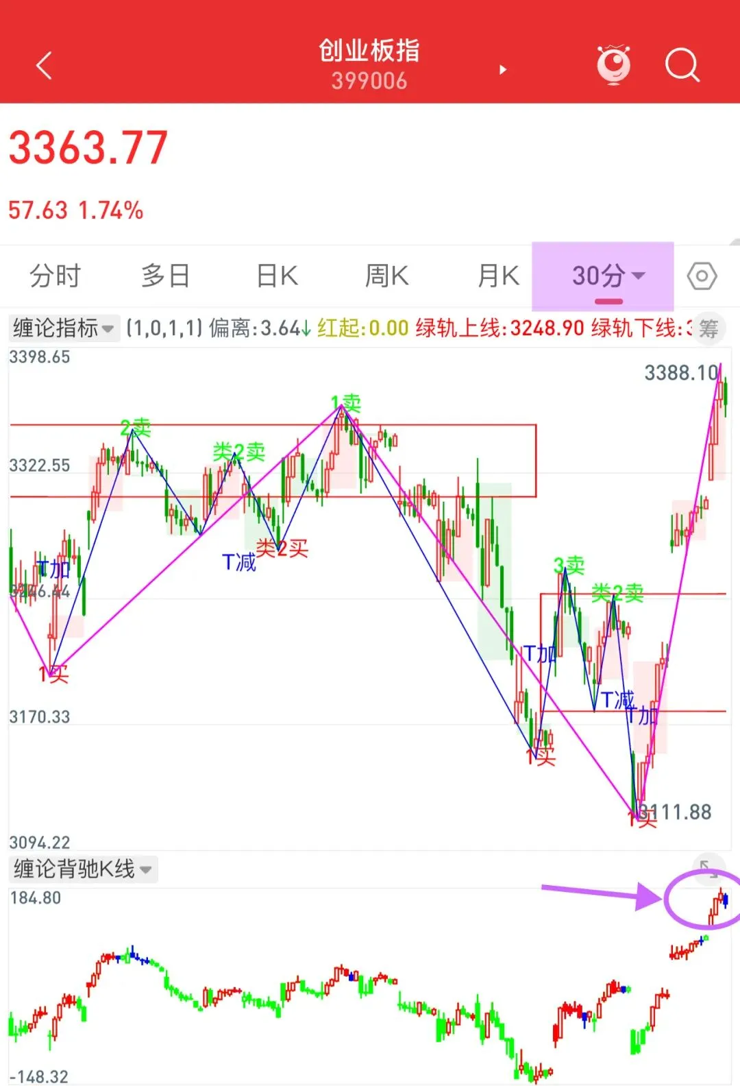 下图是2026最强手机版缠论笔段中枢指标指标工具效果展示图!2026手机端手机版缠论笔段中枢指标指标在笔和线段以及买卖点的构造上更为精准,并且功能更强大,支持在手机端执行缠论一买、缠论二买、缠论三买以及缠论类二买的手机选股功能。