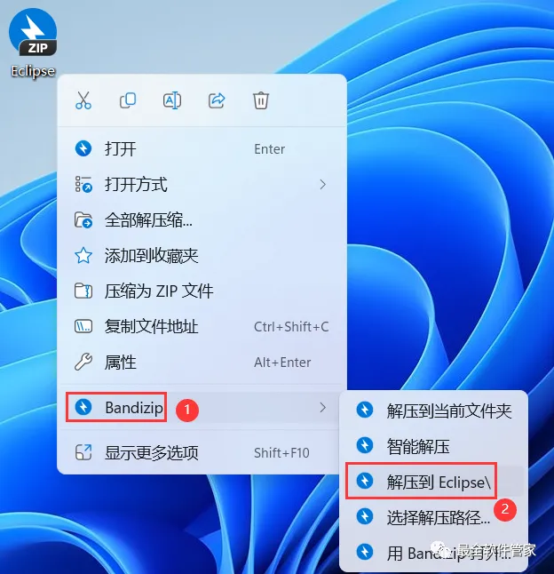 1、下载Eclipse软件安装包到电脑上,右键选择【解压到Eclipse\】