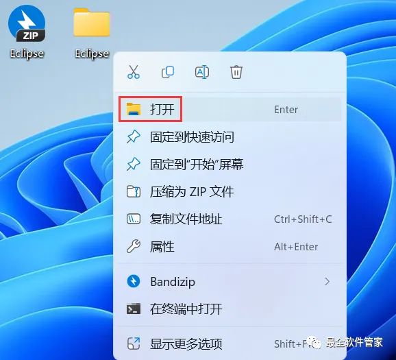28、回到桌面,右键桌面上的【Eclipse软件图标】,点击【打开】