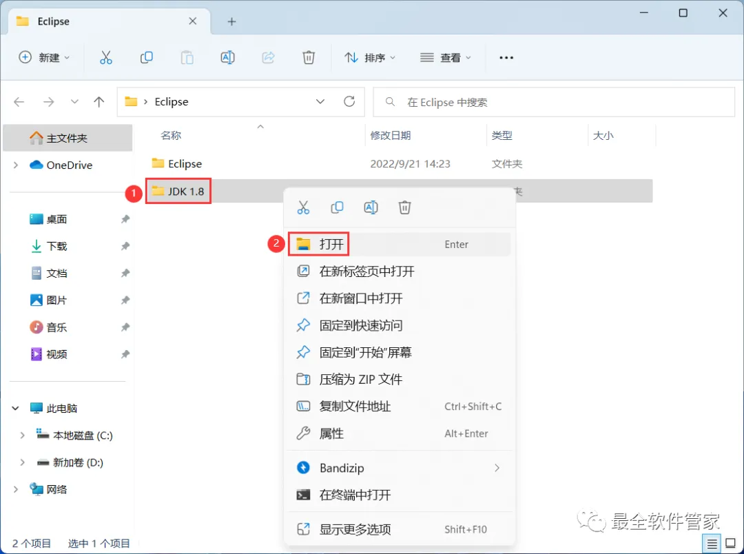 3、找到【JDK 1.8】文件夹,右键【打开】它