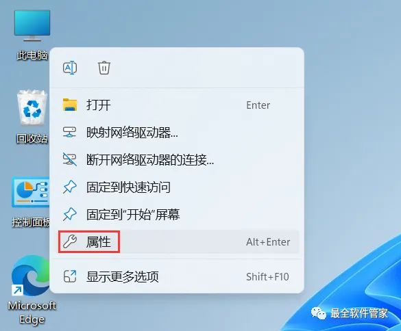 11、回到桌面,右键桌面上的【此电脑图标】,点击【属性】