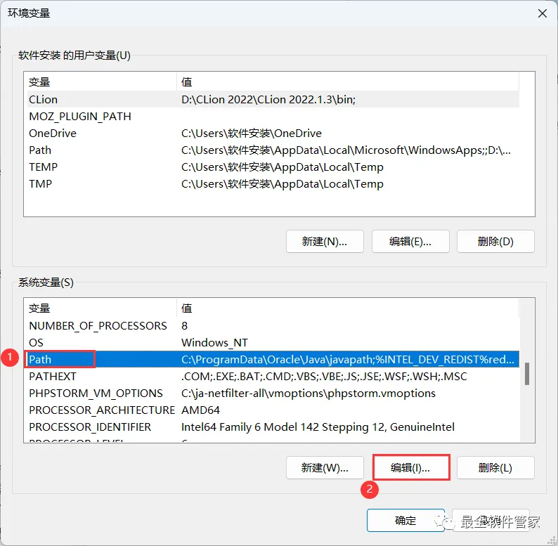 18、在系统变量一栏,找到【Path】,选中它,再点击【编辑】