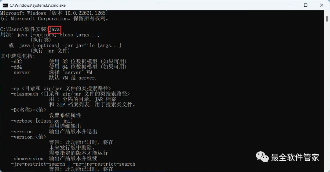 24、输入:java,按下键盘上的【Enter】回车键,得到下列反馈