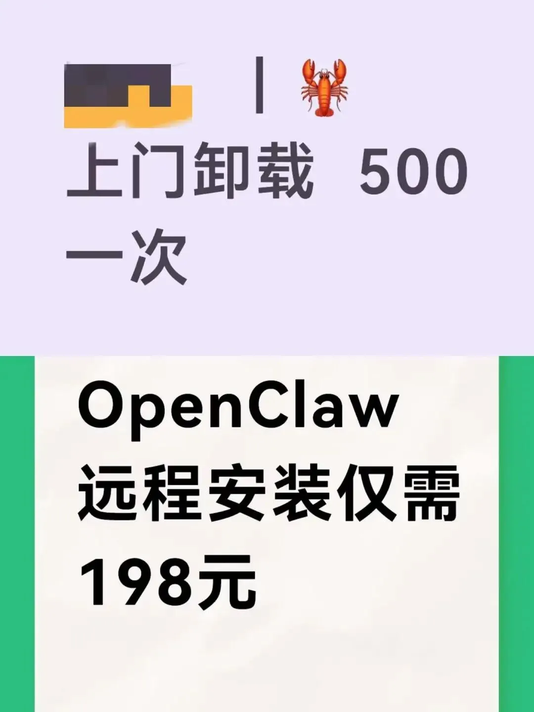而各种软件上也出现付费安装 “小龙虾”的广告了,有趣的是,过了几天后,龙虾的安全性问题被大众所熟知之后,又出现了付费卸载“小龙虾”的广告了。