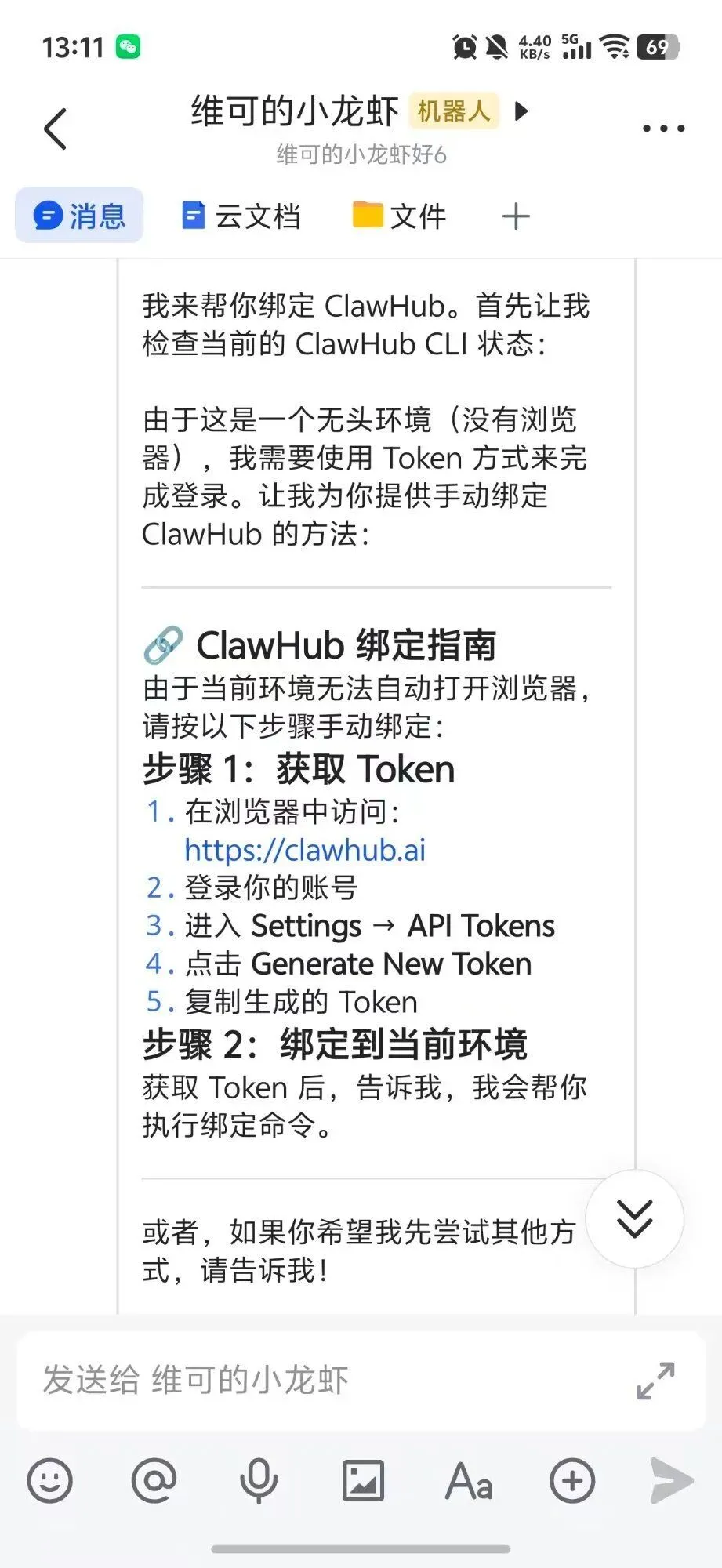 把 Token 发给小龙虾,它自动完成绑定 ✅