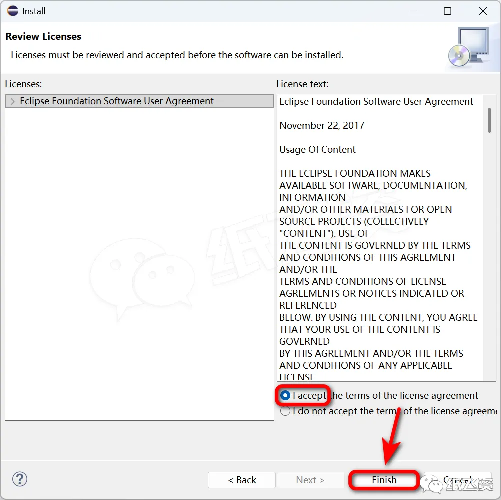 15.勾选[I accept...],点击[Finish]