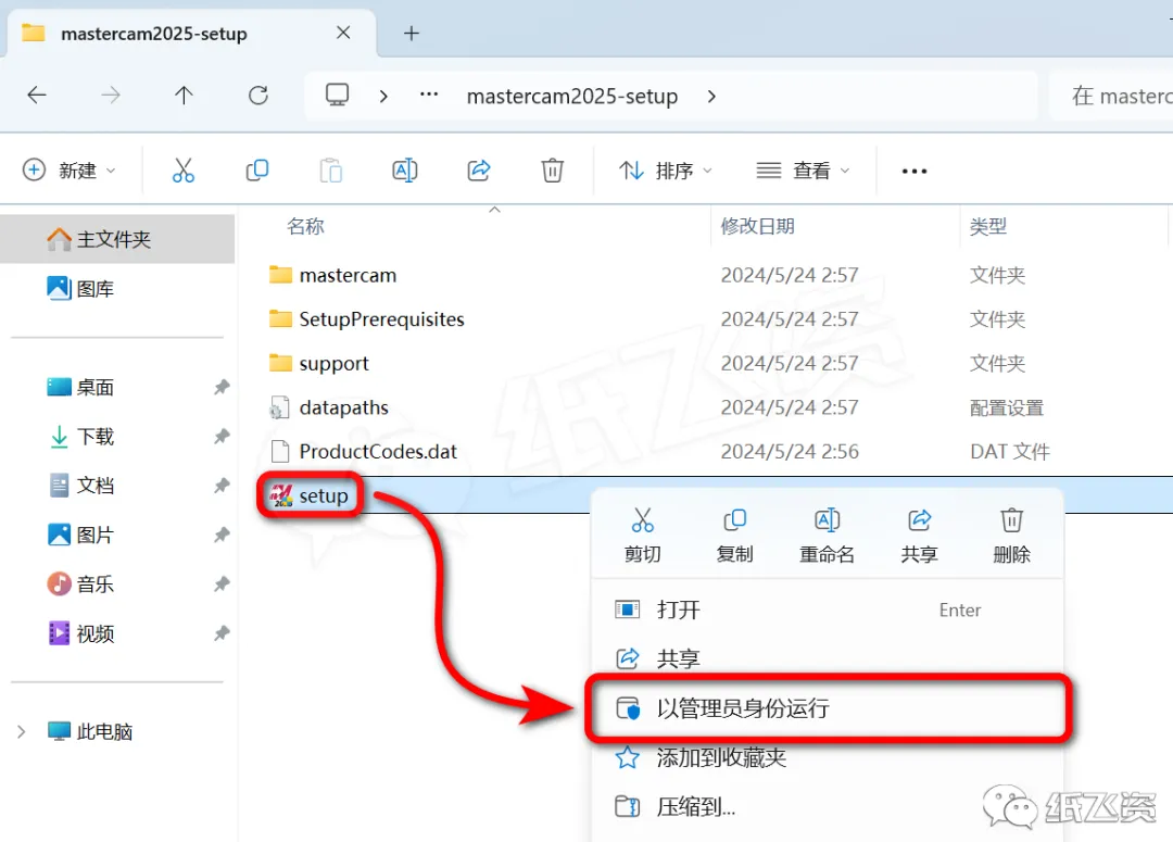 4.右击[setup]选择[以管理员身份运行]