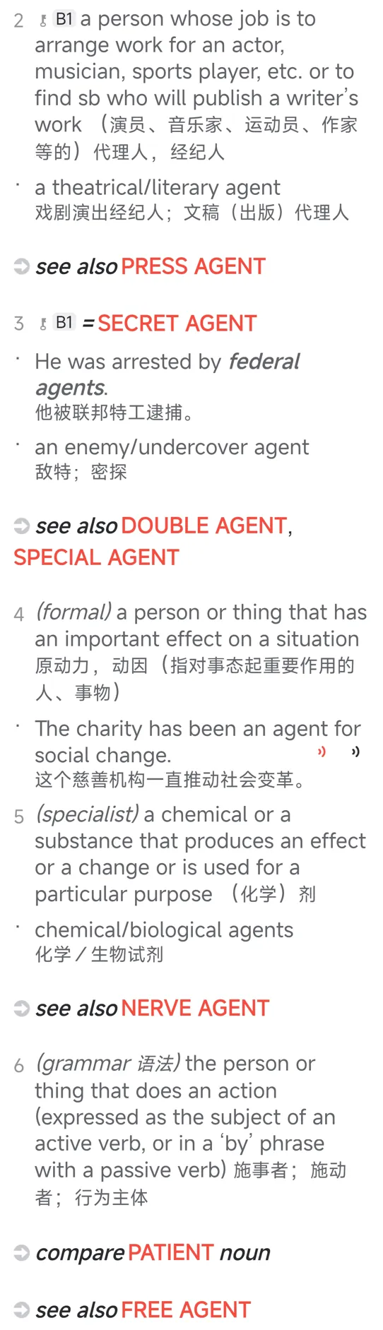 英语里的 Agent 这个名词,是一个常用词语,在牛津高阶学习词典里标注为B1级别,常用程度仅次于初阶的A1和A2级别。