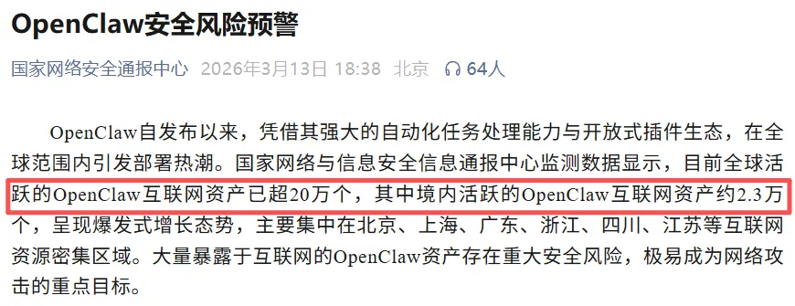 20 万+的裸奔实例,一边是监管的红线,一边是产品的进化。2026 年的今天,再把 OpenClaw 随意丢在云主机上裸奔,已经不是技术习惯问题,而是明确的合规责任问题。