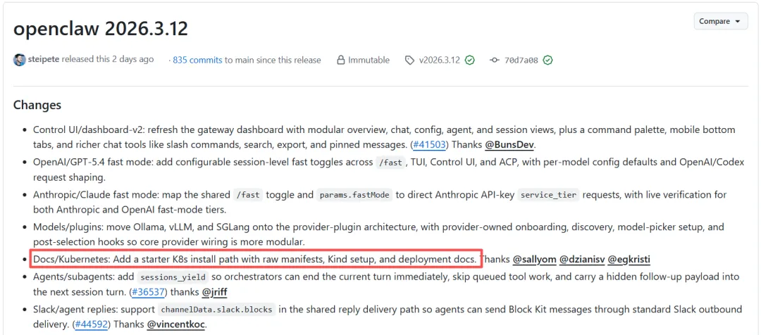 官方特意把 K8s 部署方案放在了所有功能更新的首位,这足以说明官方已将‘企业级合规部署’作为核心优先级,与当天发布的监管预警要求完全同频。