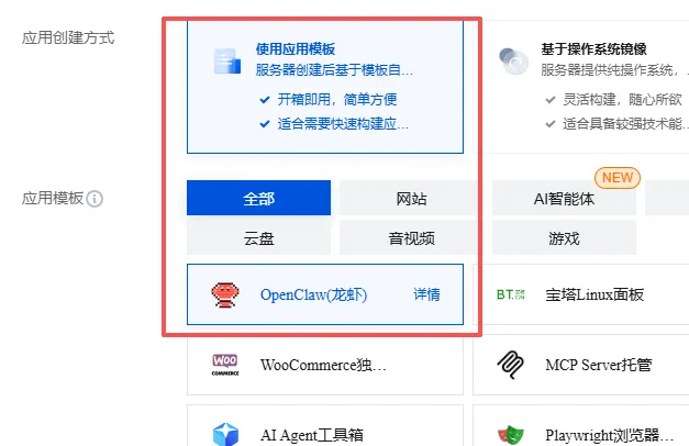 操作系统:在镜像选择中,推荐选择如Ubuntu,或者直接选择OpenClaw。