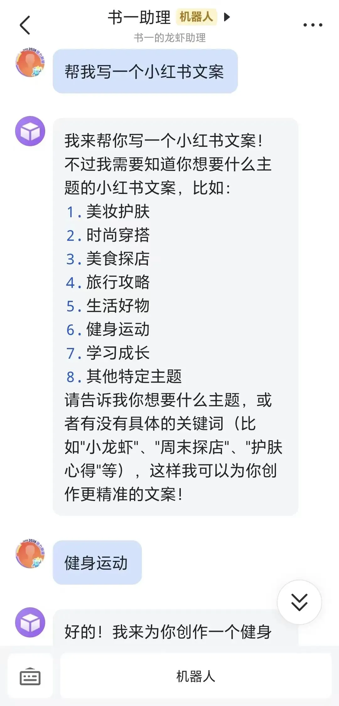 比如,我让它帮我生成一篇小红书文案,它立刻就有了回应。
