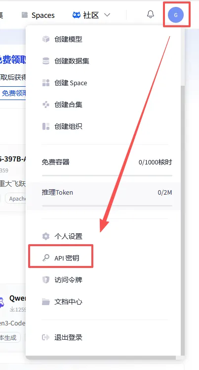 最后,打开这个链接,或者把鼠标移动到右上角,点击“API密钥”