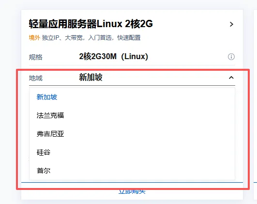 另外还有一个很多人不知道的好处,国内可以租到的云服务器,物理位置可以是在国外的,嘿嘿 给大家看一下,这是腾讯的云服务器的物理位置设置