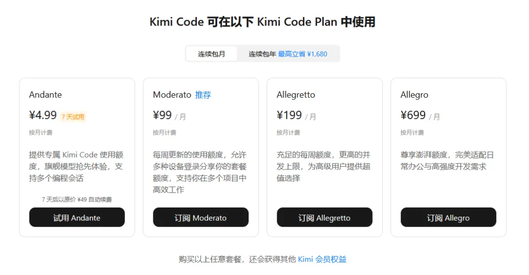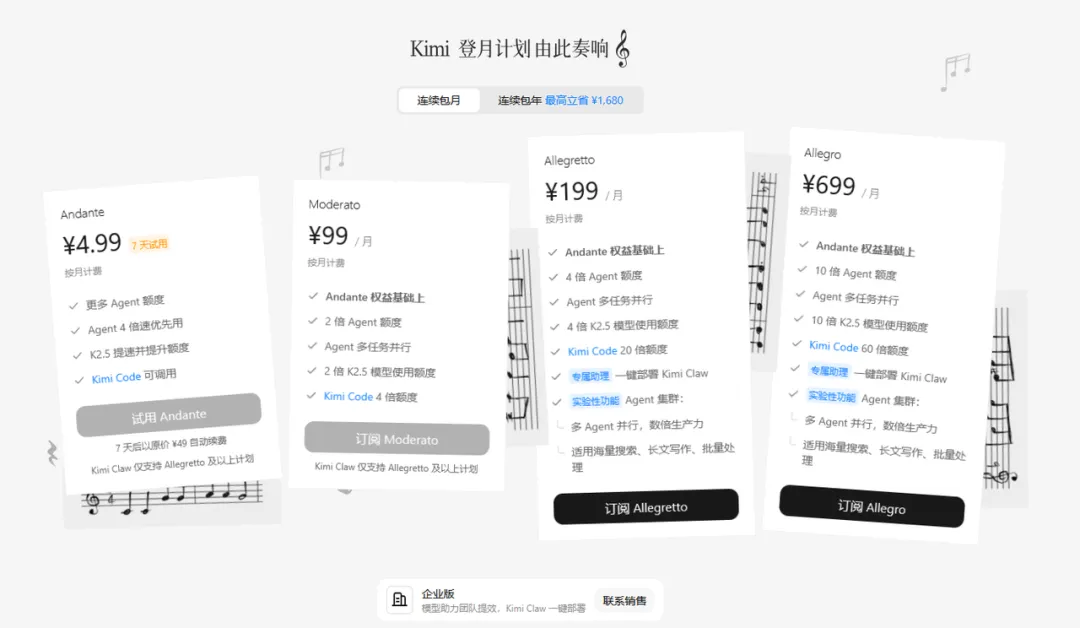 PS:标题挺中二的,套餐名称也是演奏速度的英文单词,笑死。不过kimi的母公司名字(月之暗面)也不遑多让,大概是老板的兴趣吧,哈哈