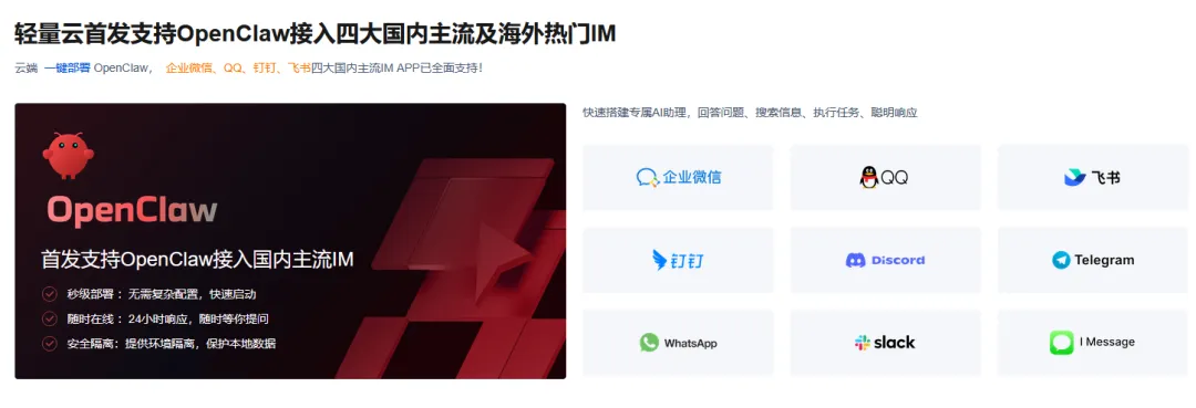 腾讯云自然也是不甘落后,一键部署小龙虾方案