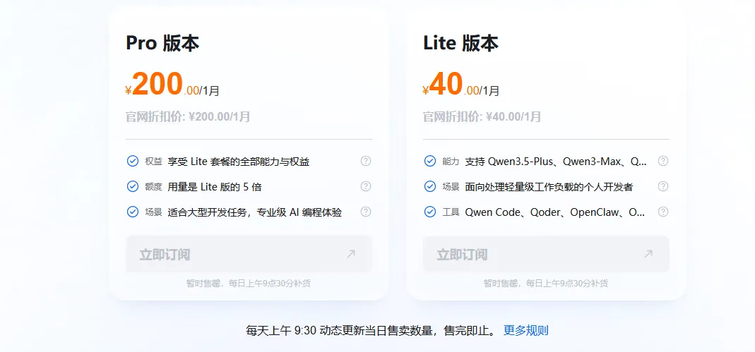 阿里云百炼因为订购太多,实施限购了,每天早上9:30放一波
