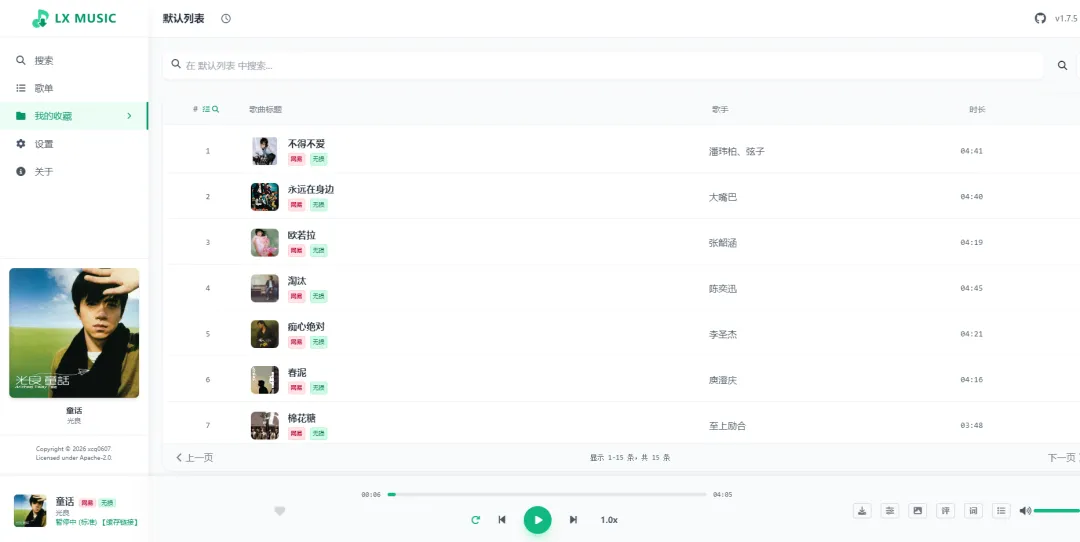 白嫖可下载,可在线听的歌曲网站大叔又发现了一个宝藏式的听歌网站源代码coco音乐站,它支持多平台搜索,可以极速解析,批量下载,界面纯净简洁无广告,相当的奈斯,主要是可以白嫖,本文仅用作交流分享,站点仅用作测试,切勿用于商业用途。内置多个解析音源文件,搜索,听歌都是秒响应,非常的不错。大叔测试了一下,相当的满意,就直接将这个源码迁移到了大叔的docker容器上给大家进行展示!coco音乐下载站网址:http://www.lt0911.cc:3000前面给大家用docker做的LX Music网址: http://www.lt0911.cc:9527/music大家多点点文章内的小广告,也算给大叔的服务器赞助了,感谢大家!
