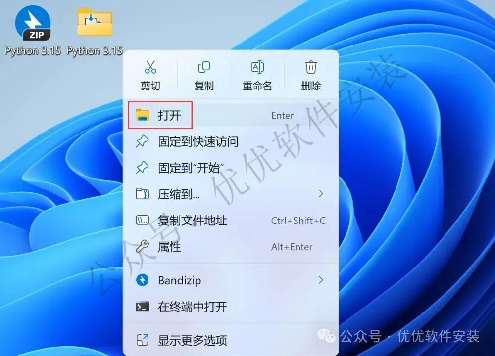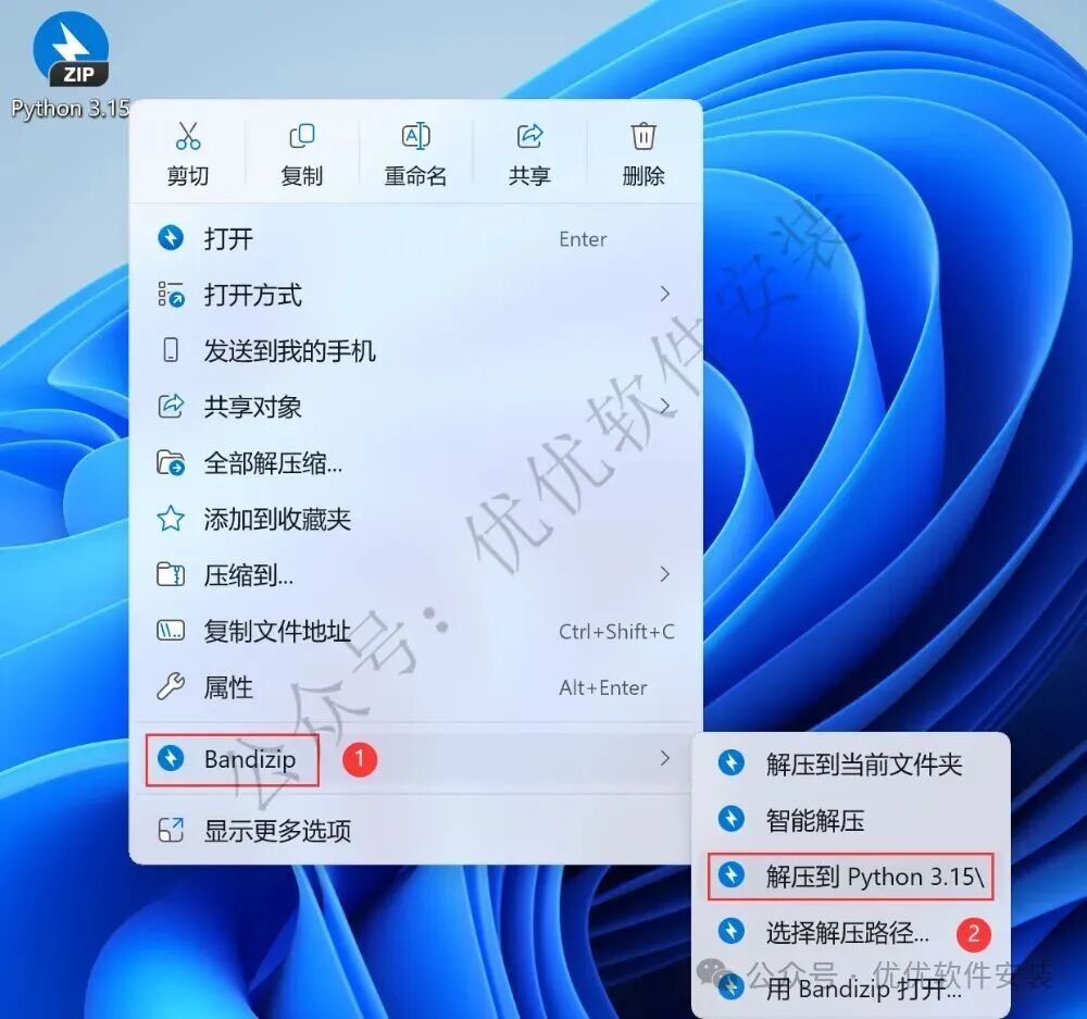 1、下载Python 3.15软件安装包到电脑上,右键选择【解压到Python 3.15\】