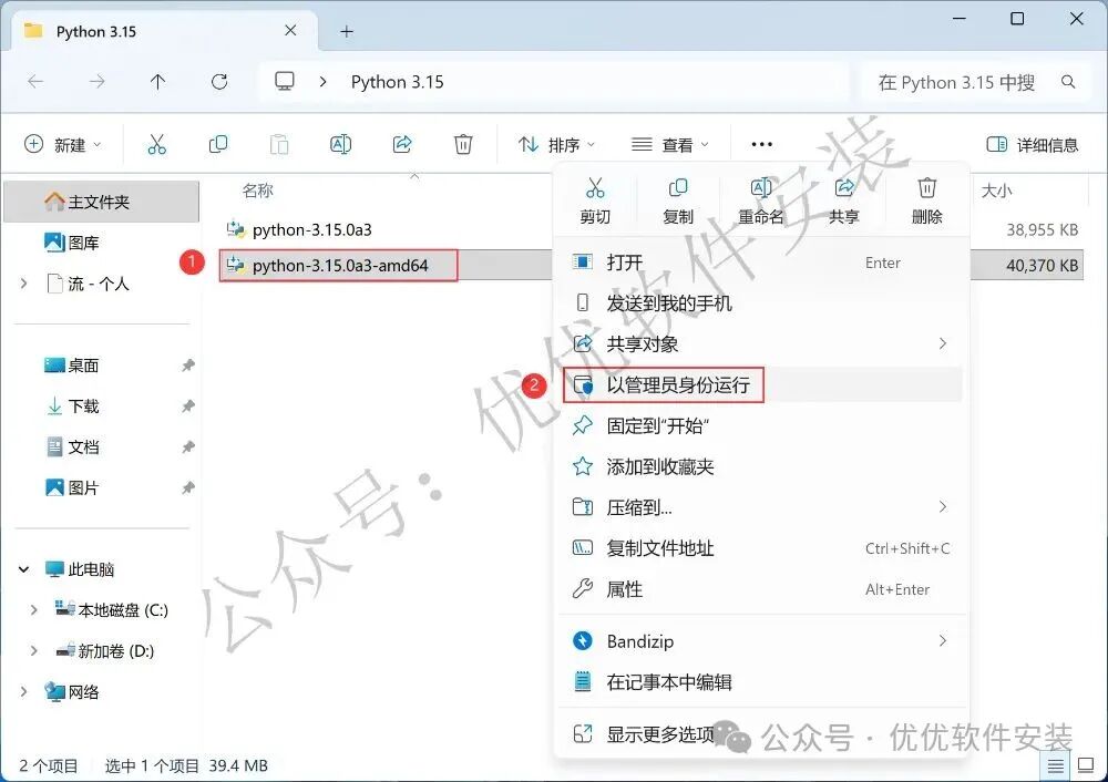 3、找到【python-3.15】应用程序,右键选择【以管理员身份运行】它