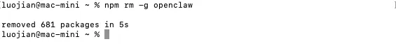 ls -la ~ | grep -E "claw|molt"看到的话,全部删掉: