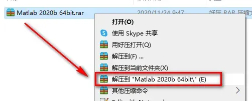 1.鼠标右键解压到“Matlab 2020b 64bit”